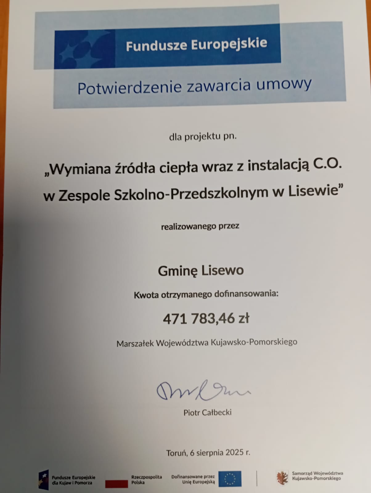 Gmina Lisewo pozyskała dofinansowanie w kwocie 471 783,46 zł w ramach programu Fundusze Europejskie dla Kujaw i Pomorza 2021-2027.