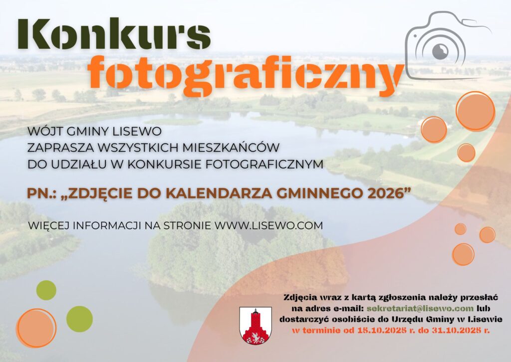 Wójt Gminy Lisewo serdecznie zaprasza wszystkich mieszkańców gminy Lisewo do udziału w konkursie fotograficznym, którego celem jest stworzenie wyjątkowego kalendarza gminnego na 2026 rok!