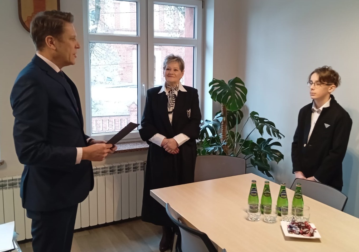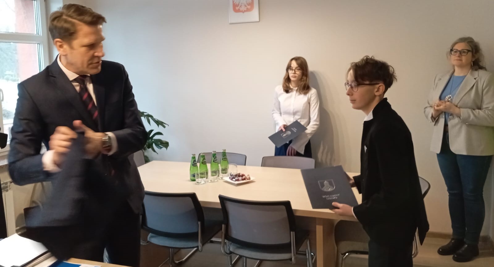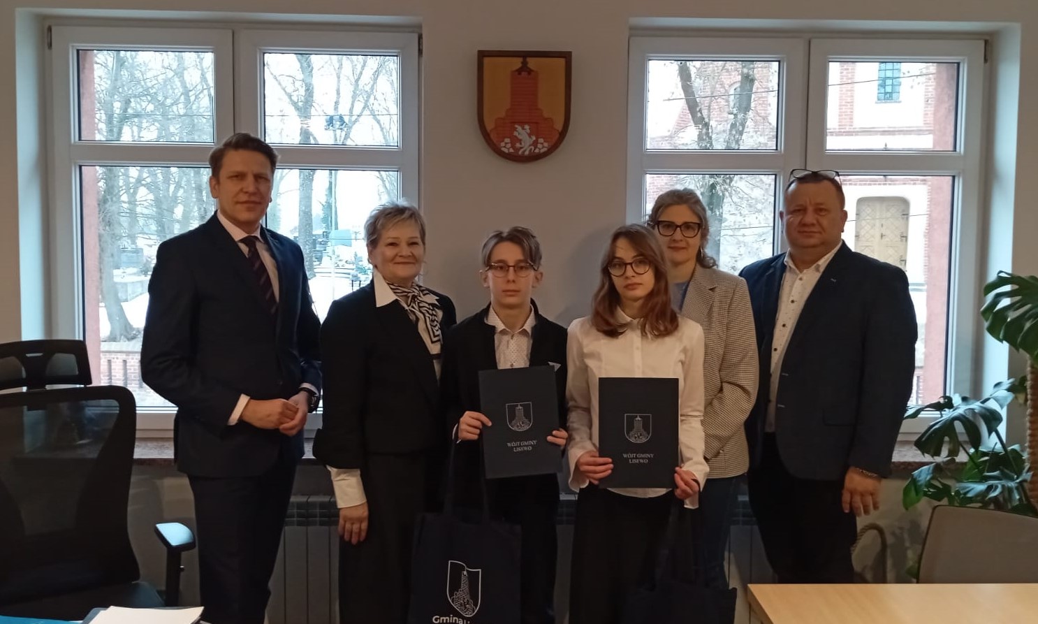 Z tej okazji Wójt Gminy Lisewo, Bartosz Jaworski, spotkał się dziś ze stypendystami, dyrektorem Zespołu Szkolno-Przedszkolnego w Lisewie, panem Krzysztofem Sobczykiem, oraz opiekunkami uczniów – panią Lidią Szczutkowską i panią Anną Dulską.